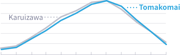Tomakomai’s August average temperature is a cool 20°C, with a yearly temperature profile similar to the summer resort Karuizawa.