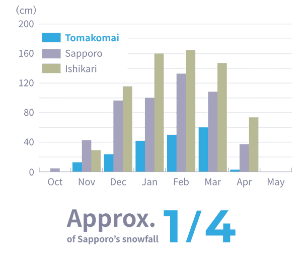 Tomakomai receives about one-quarter the snowfall of Sapporo, which is among the lowest snowfalls in Hokkaido.