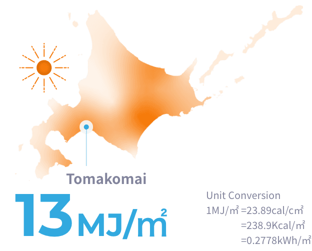 Tomakomai enjoys abundant sunlight, and reliable year-round sunlight hours provide an ideal environment for businesses such as solar power generation and vegetable processing.
