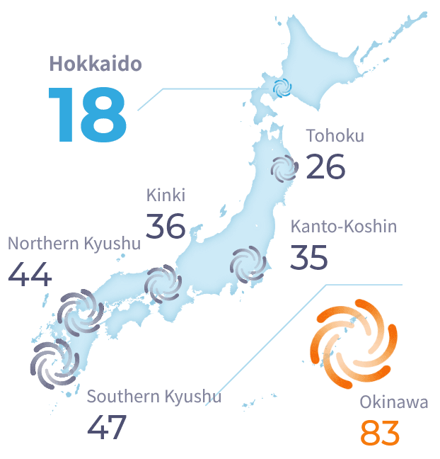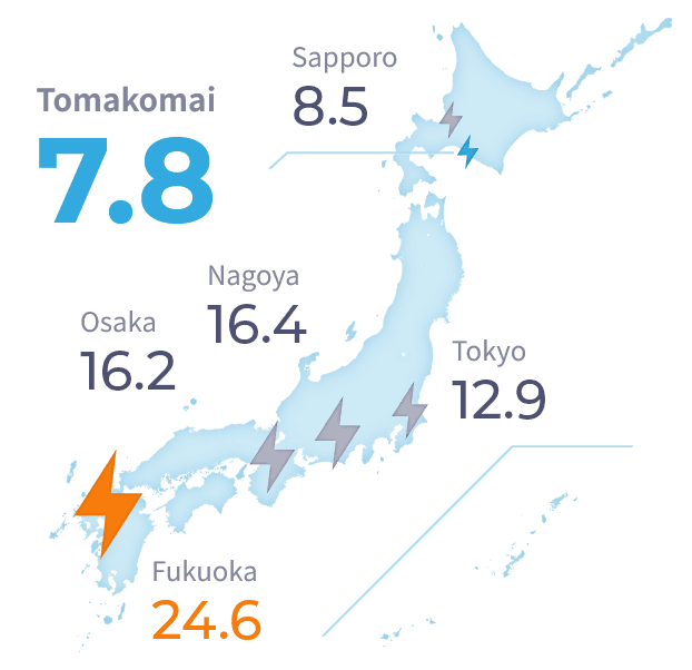 Compared to most regions in Japan, Tomakomai’s environment has fewer risk factors such as typhoon influence days or thunderstorm days.
