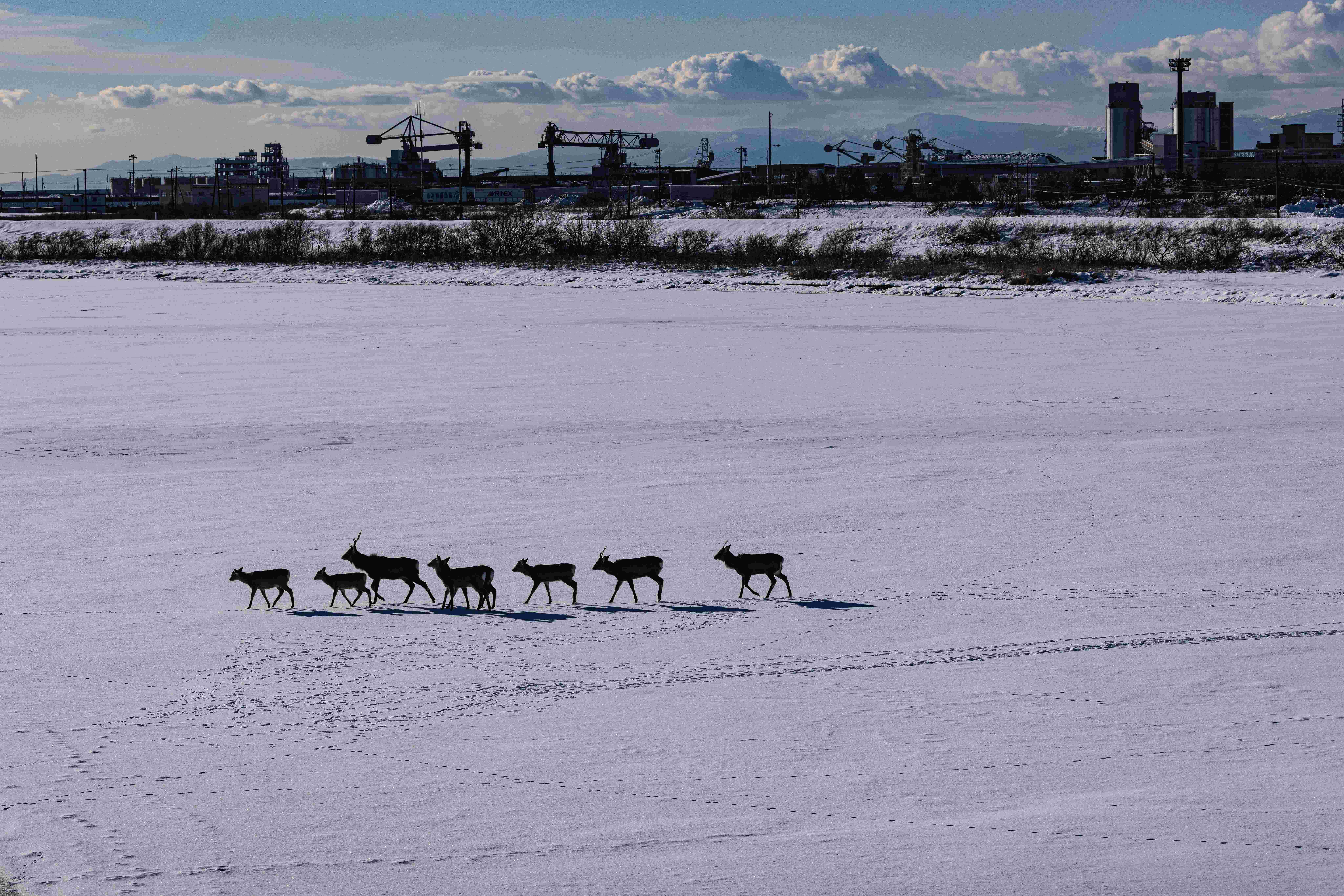 最近の鹿の増加には目を見張ります。歴史を振り返ると、明治時代には苫小牧に鹿肉の缶詰工場があったというということです。雪の少ない苫小牧地方に越冬のため鹿が大移動してきているのでしょうか。今回の応募の中にも多くの鹿の写真がありましたが、その中でも佐々木歩さんの作品は秀逸でした。